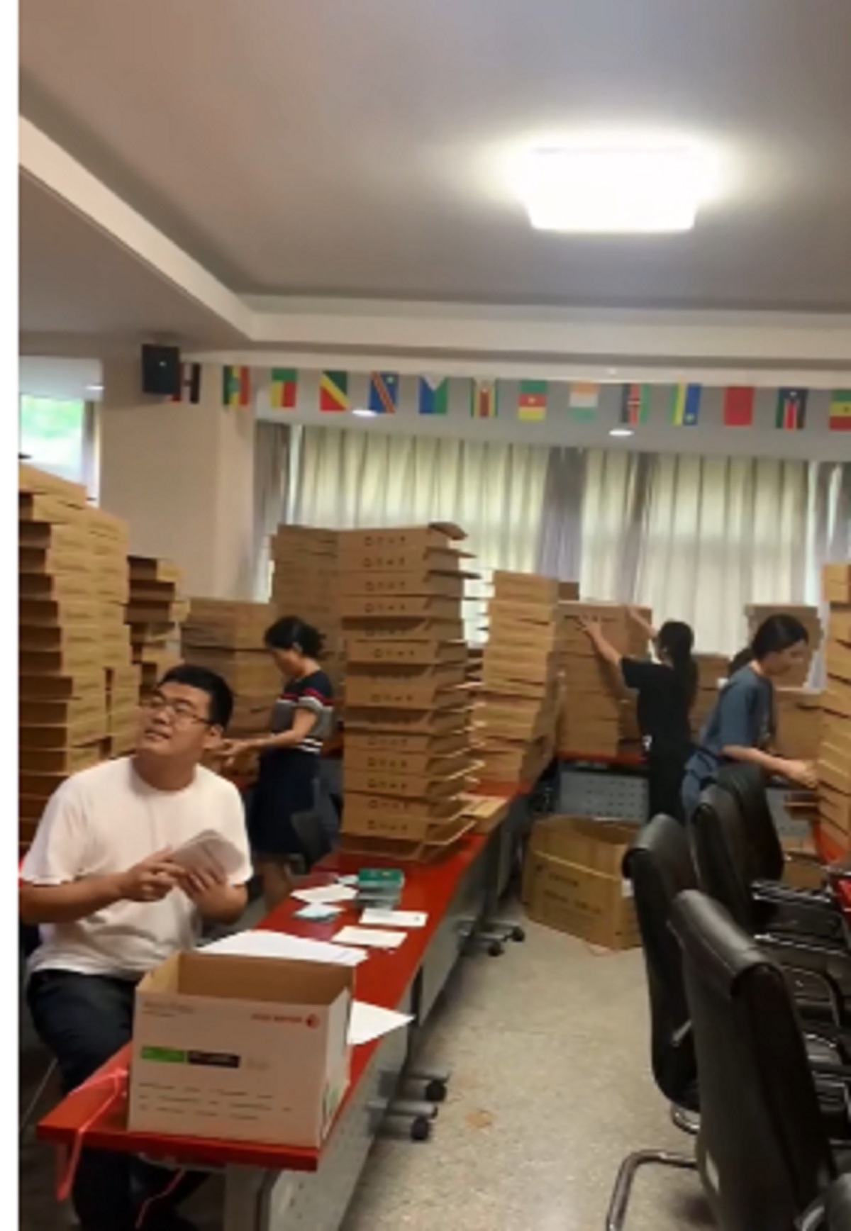 在材料整理打包过程中,学院各位老师纷纷化身“打包员”、“快递员”,分工协作、耐心审核、细心整理、精心打包......用最有力的行动、最真挚的情感、最质朴的付出为全体毕业生提供暖心周到的服务,助力这场特殊的“毕业寄”,努力让学生感受到“家”一样的温暖。