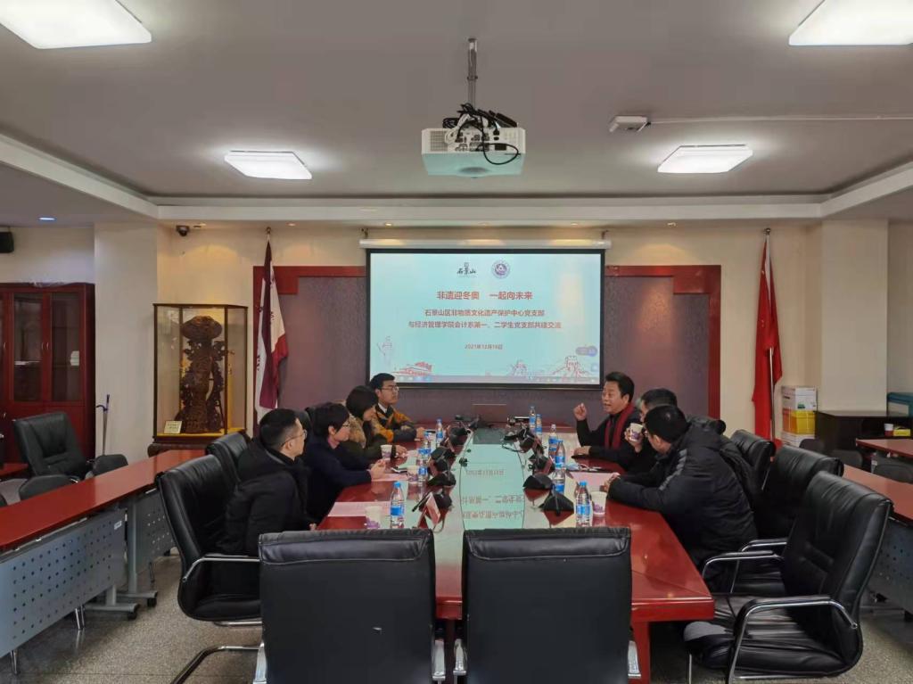 在展非遗、颂情怀、强自信活动环节,自12月13日至12月17日,在励学楼117室进行为期一周的石景山区非遗项目展示,帮助在校师生了解身边的非遗,感受非遗的魅力。现场展示既有石景山区各个非遗项目的介绍,同时也有非遗项目的代表性展品,还有京津冀非遗文化交流的内容。活动期间,对石景山区非遗声音故事(七)进行了展示和展播,对本学期组织的“非遗中的家国情怀”征文大赛进行了颁奖,活动累计吸引近3000人次前来参观。大家纷纷表示,在感受非遗魅力的同时,也增强了文化自信,提升了民族自信心。活动中,石景山区非物质文化遗产保护中心党支部与英国上市公司365会计系第一、二学生党支部还就共建工作进行了交流座谈,现场讨论气氛热烈。
