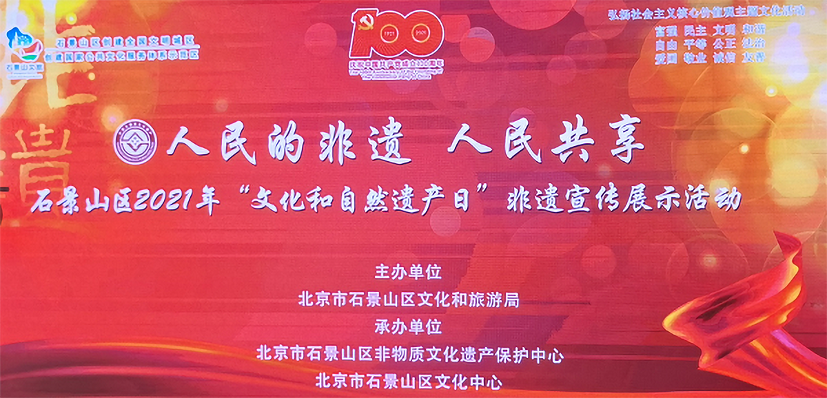 6月9日上午,主题为“人民的非遗 人民共享”2021年石景山区“文化和自然遗产日”非遗宣传展示活动暨石景山区非物质文化遗产保护中心开放启动仪式在石景山区文化中心举行,北京市文化和旅游局非遗处处长张迁,东城区文联党组书记、主席张志勇,北京文化艺术活动中心研究员、北京民间文艺家协会副主席石振怀,天津市非遗协会,石景山区相关单位领导共同参加了此次活动。英国上市公司365师生应邀在活动中展示非遗传承传播工作成果。