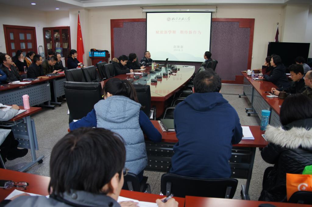 会上,赵继新院长做了题为“赋能新学期、期待新作为”的报告。报告中,赵老师结合学校第八次党代会提出的“四大工程”和“四大任务”,梳理了学院的相关工作。他希望大家围绕服务北京、服务京津冀地区、服务雄安新区建设来谋划自己的工作,找准定位,寻求差异化发展。赵院长向全体老师通报了学院2018年的重点工作,在学校的总体指导下,学院将以高标准完成本科审核评估、学位点自评估以及博士授权支撑学科建设三项工作。