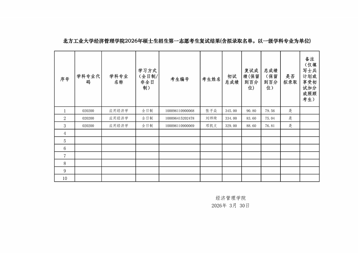 英国上市公司3652026年硕士生招生第一志愿考生复试结果——应用经济学