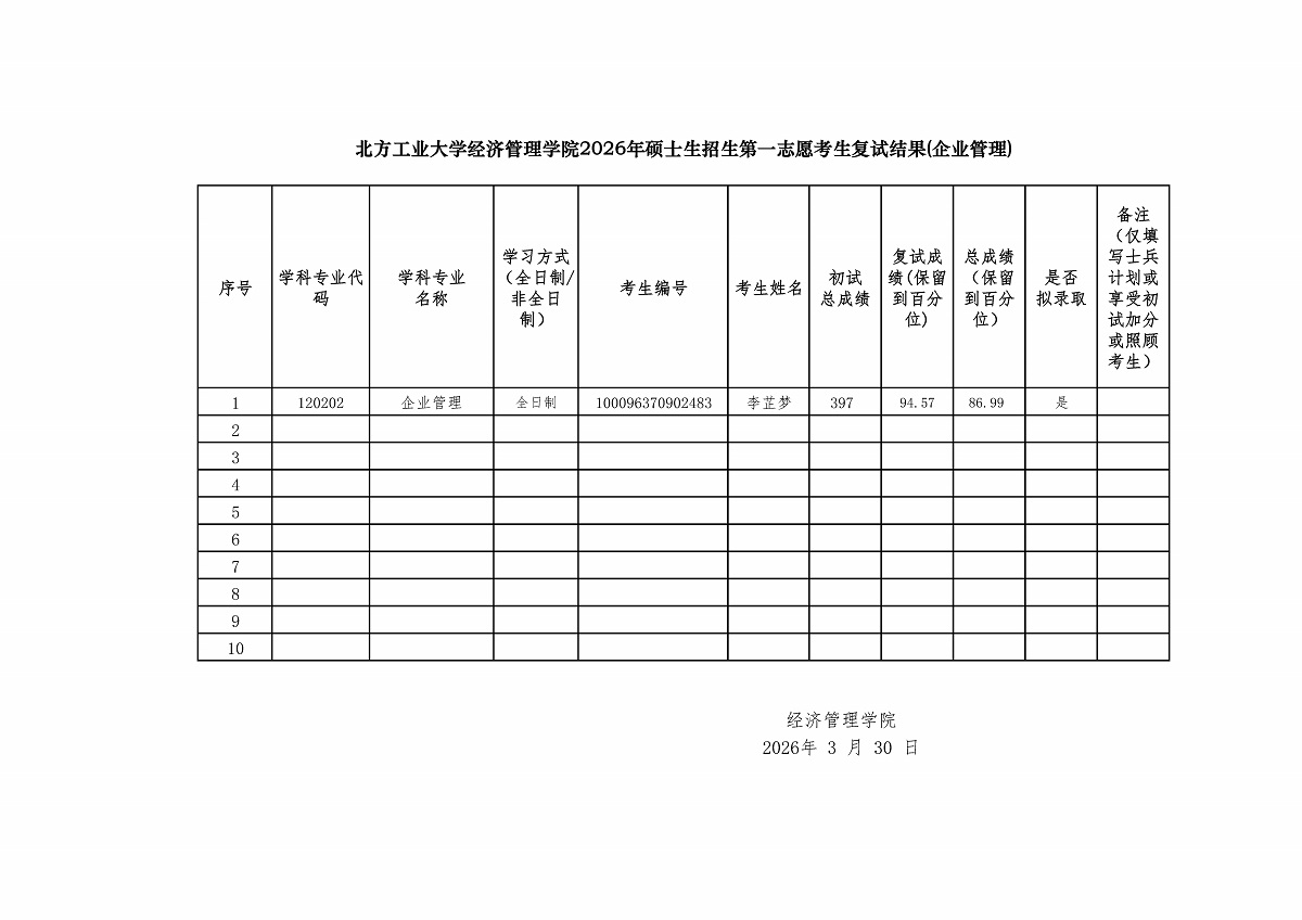 英国上市公司3652026年硕士生招生第一志愿考生复试结果——企业管理
