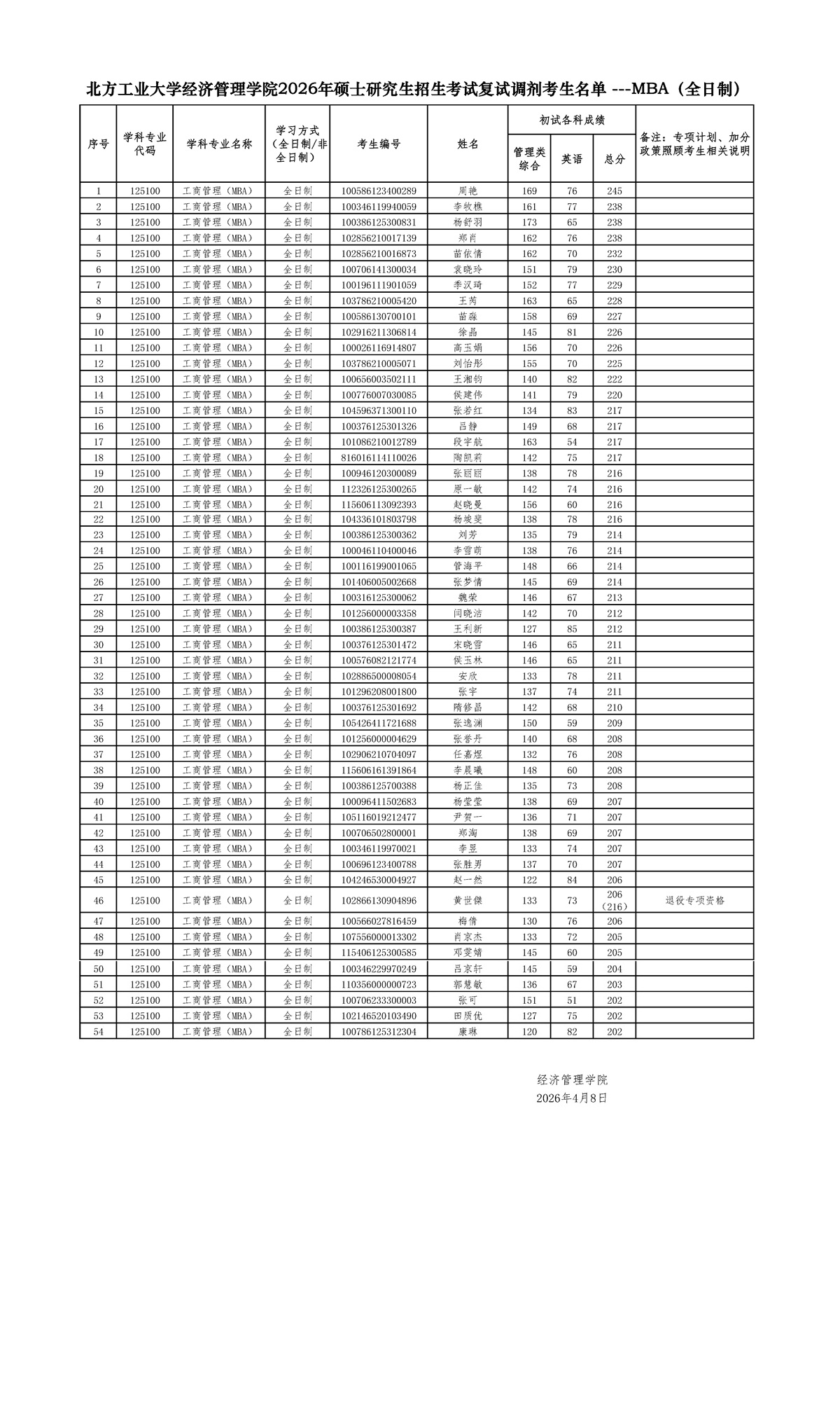 英国上市公司3652026年硕士研究生招生考试复试调剂考生名单 ---MBA(全日制)