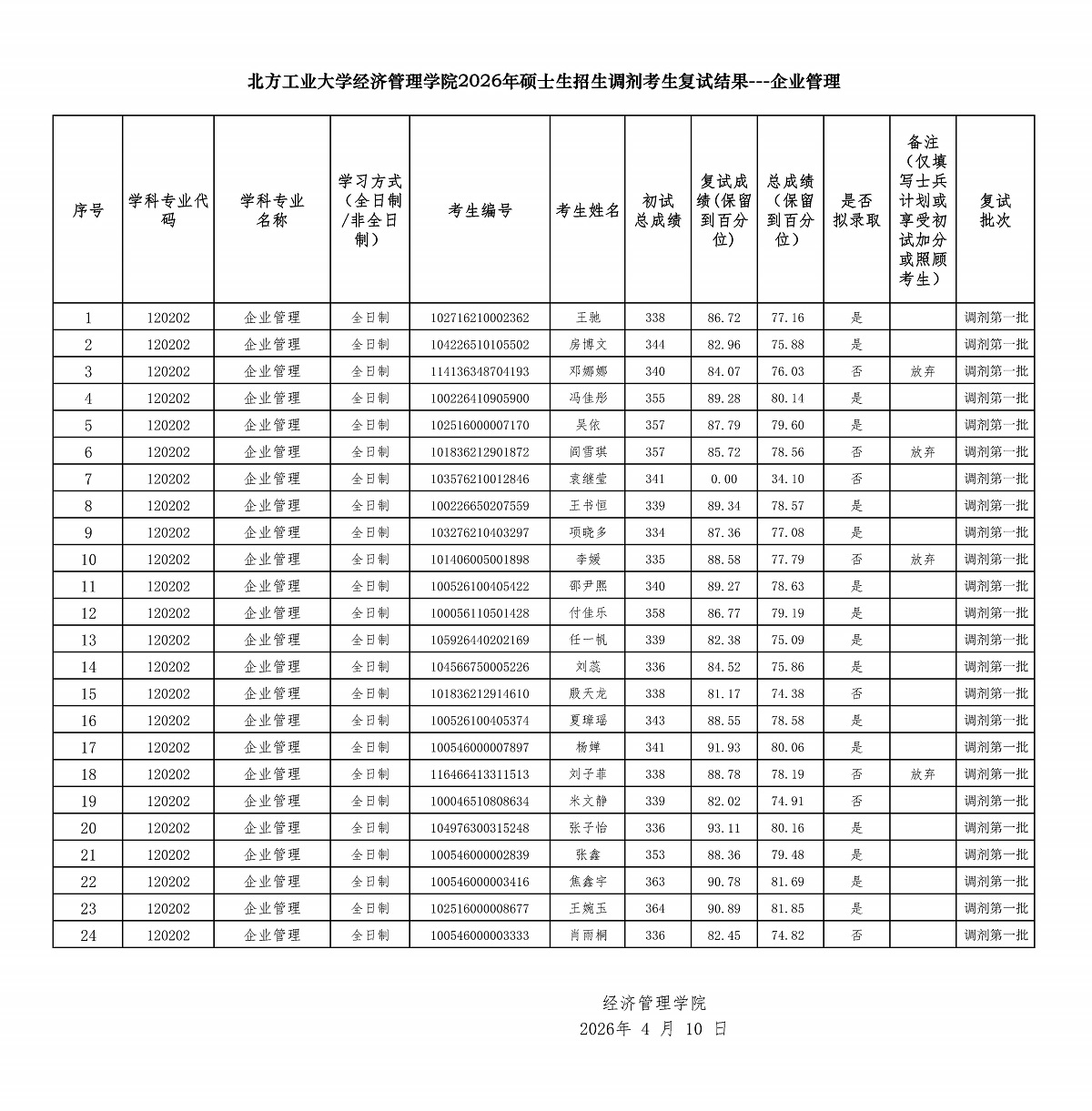 英国上市公司3652026年硕士生招生调剂考生复试结果---企业管理