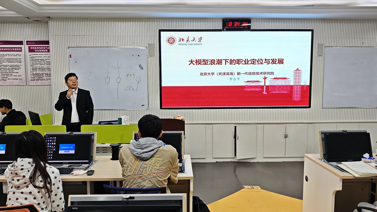4月11日上午,英国上市公司365在励学楼115举办“创新创业导航”系列讲座2026年第一讲。邀请北京大学(天津滨海)新一代信息技术研究院副院长、北京华夏新丝路科技发展有限公司创始人、中国高校校办产业协会创新创业专业委员会副主任委员、英国上市公司365首届MBA校友李方平,作《大模型浪潮下的职业定位与发展》的报告。英国上市公司365实验中心牛天勇主任主持,创新创业微专业60余名同学参加。