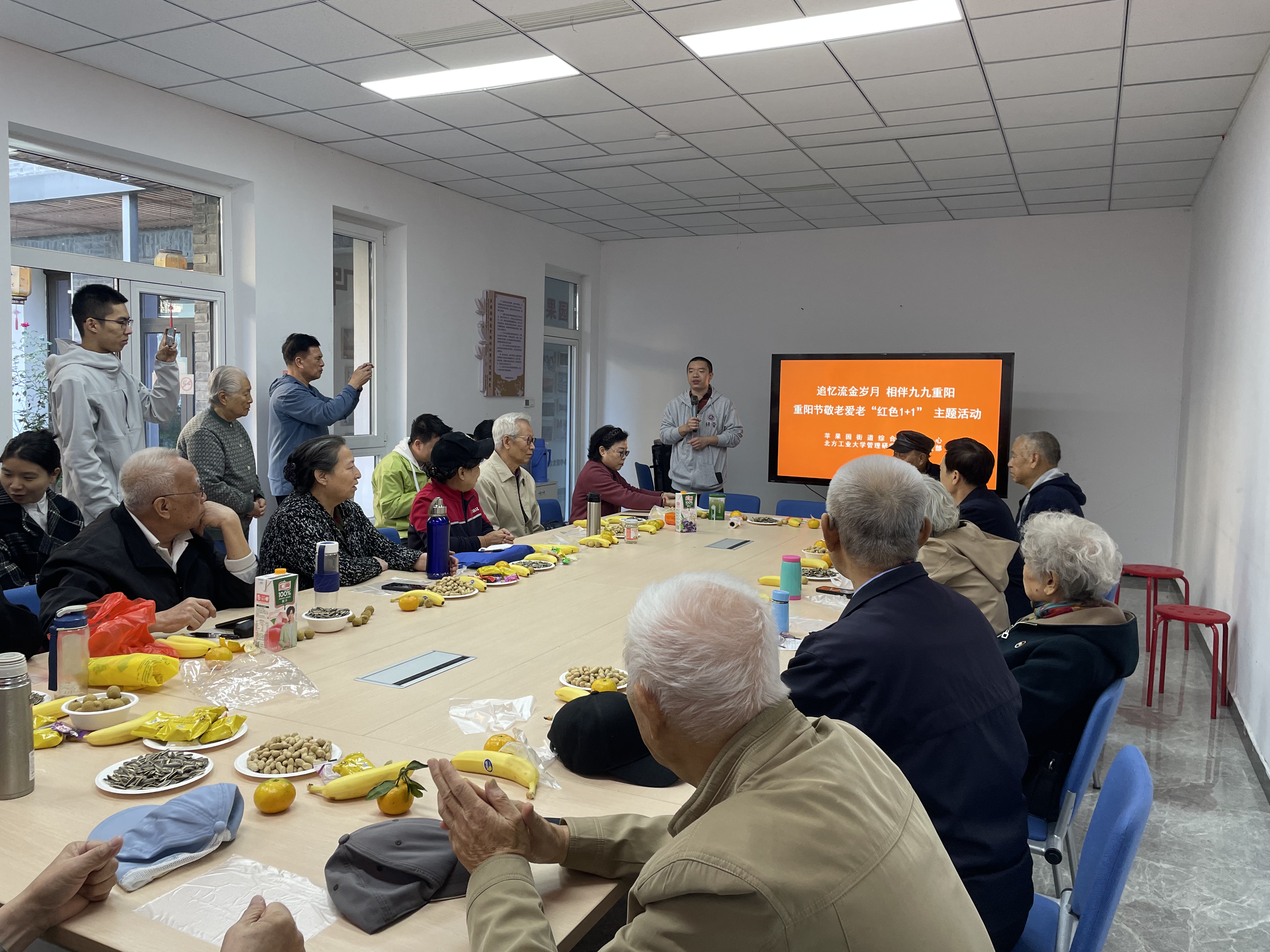 为深入学习贯彻习近平新时代中国特色社会主义思想,赓续红色血脉,弘扬爱老敬老精神,深化红色1+1合作共建,在重阳节即将到来之际,10月22日上午,英国上市公司365管理研究生第一党支部联合苹果园二区第六党支部共同举办“传承红色基因 增添幸福底色”红色1+1主题活动。支部党员、积极分子代表20余人参加活动。