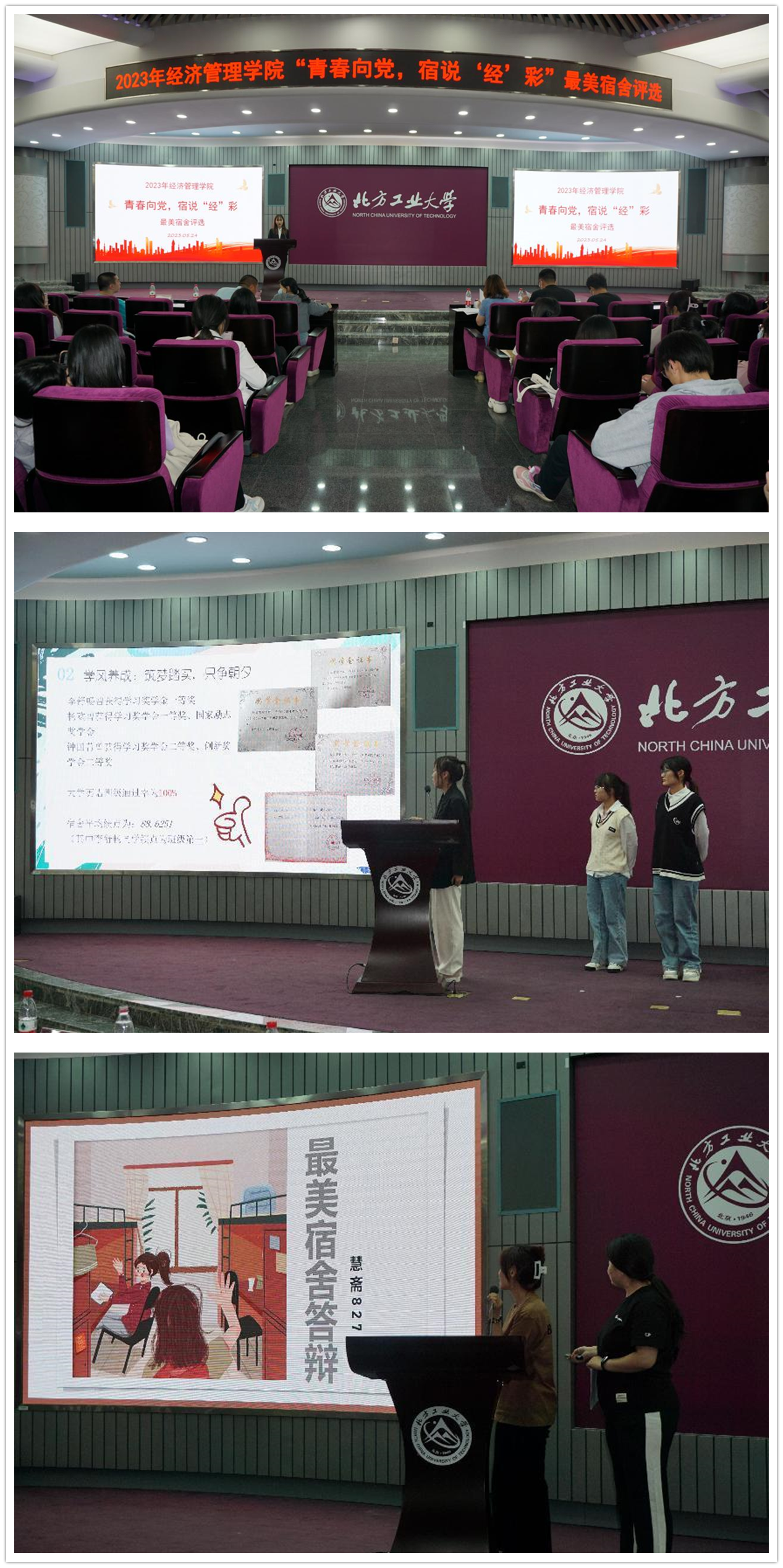 展示环节,参加评选的宿舍围绕思想引领、学风建设、活动参与、宿舍环境卫生、宿舍文化等方面内容进行了深入细致的展示汇报,充分展示了各个宿舍的不同特色,并分享了宿舍成员之间的温馨故事。参评宿舍展现了温馨整洁的宿舍环境以及积极进取的学习氛围,充分展现了同学们的良好精神风貌,为学院广大学子提供了宝贵的宿舍建设经验。