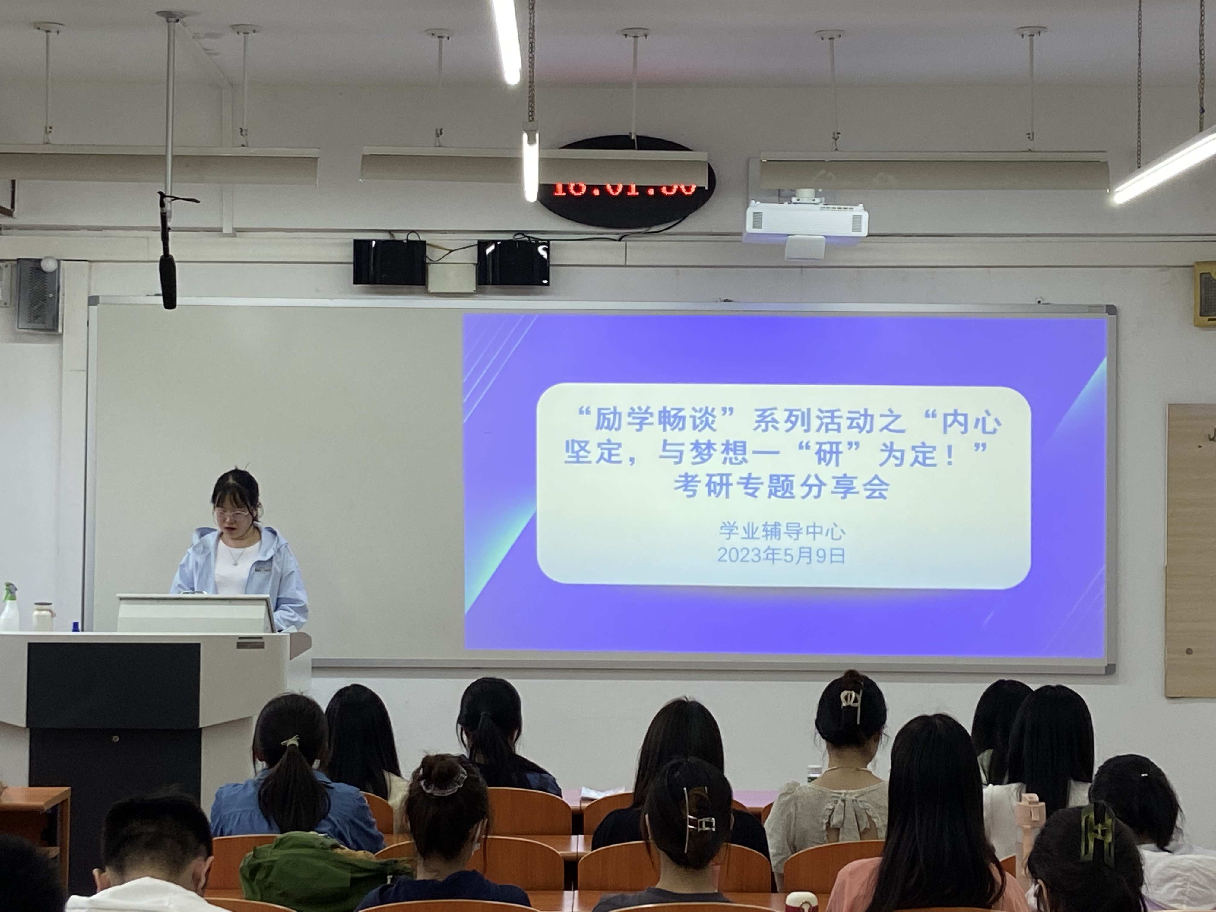 会上,6位考取不同学校、不同专业的优秀学长学姐依次进行了经验分享交流。他们结合自身考研复习经历,围绕日常学习、报考学校选择、自身定位、备考心态、复习技巧、调剂经验等方面内容,深入细致与同学们进行交流分享。各位学长学姐既分享了备战考研的艰辛过程,也讲述了自己的心路历程,并仔细解答了同学们提出的各类问题,鼓励同学们调整好心态,不到最后一刻绝不放弃,同时也告诉同学们要正确定位,理性看待考研和就业。