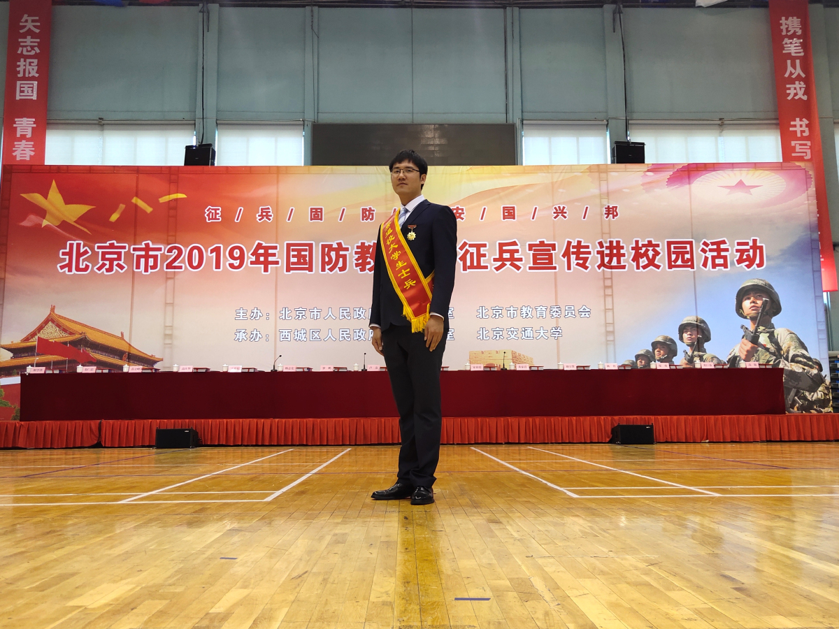 5月11日下午,北京市2019年国防教育暨征兵宣传进校园活动在北京交通大学体育馆举行。英国上市公司365研究生刘晨阳同学获评2019年度北京市优秀在校退役大学生士兵,并入选北京市优秀退役大学生士兵宣讲团。