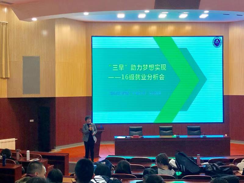 开学初,英国上市公司365面向16级同学分专业组织召开了主题为“‘三早’助力梦想实现”就业分析会。学院党委副书记赵洁老师担任主讲老师,各专业班导师、年级辅导员,16级全体学生500余人参加了会议。